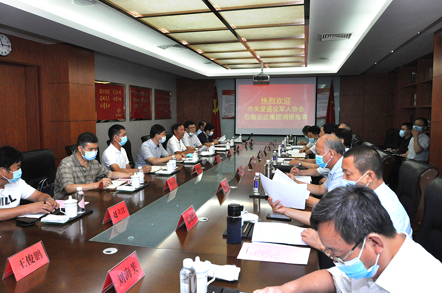8月20日,天津市关爱退役军人协会会长苟利军带队到东丽区调研,总结东丽区“退役军人之家”建设经验,研究提升完善“退役军人之家”建设,并调研退役军人自主创业的成功企业代表—安达集团。市关爱退役军人协会副会长于秋军、穆守俊、何江、朱清相、张瑞新,市关爱退役军人协会秘书长宋燕鸣,副秘书长刘海芙、张健参加。副区长张庆岩,区退役军人事务局局长路四江,区关爱退役军人协会会长陈文华陪同。安达集团党委书记、董事长崔洪金参加了调研活动。