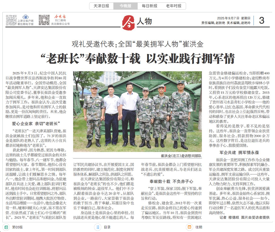 崔洪金参加9.3阅兵 天津《今晚报》专题报道